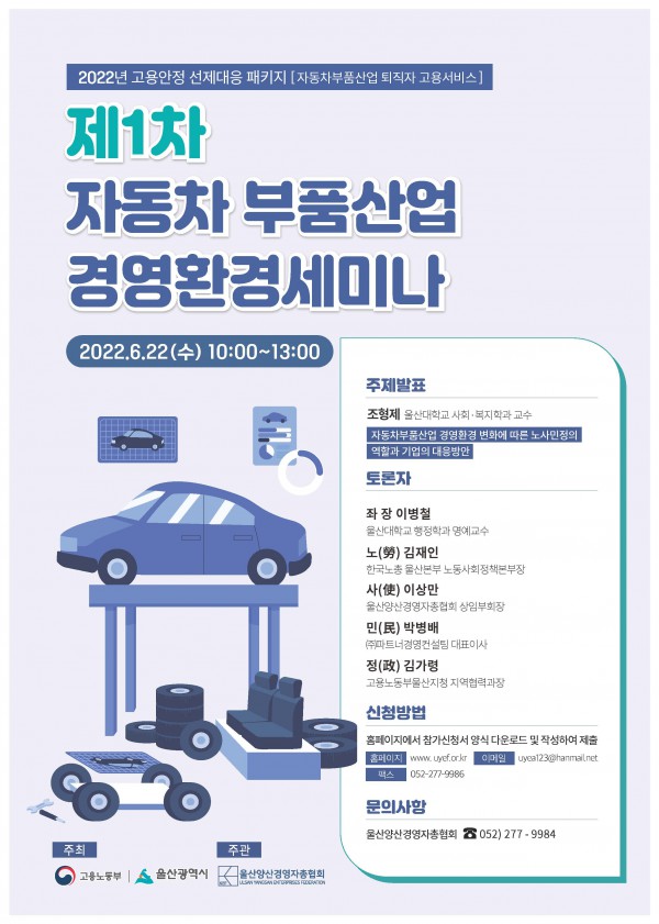 자동차부품산업 퇴직자 고용서비스 | 제1차 자동차부품산업 경영환경 세미나 개최 안내