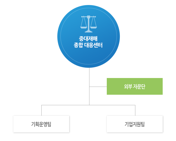 - 중대재해 종합대응센터에서는 사업장 안전관리에 필요한 법률준수 상담, 자료 제공, 산재예방 관련 정부사업 연계 지원 등 기업의 안전역량을 강화하기 위한 다양한 맞춤서비스를 제공합니다.