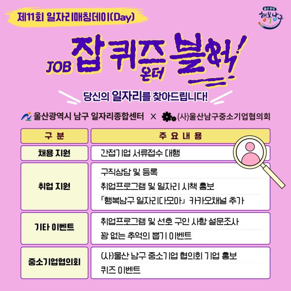 [홍보협조] 제11회 일자리매칭데이(남구 청년FESTA)