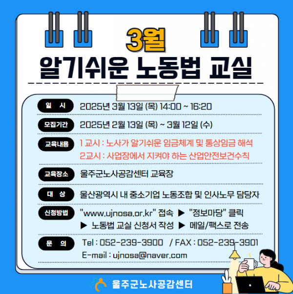 [홍보협조] 울주군노사공감센터 25년 3월 노동법교실 운영 안내